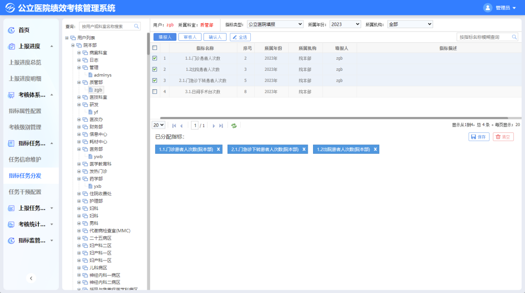 同时通过对数据填报、审核、确认的权限控制,分解考核与整改目标,指标分发到对应的责任科室、对应的人员、角色采取分类分权限管理,以保证指标数据上报过程的精细化管理,也契合了医院智慧管理对组织管理上的变革。