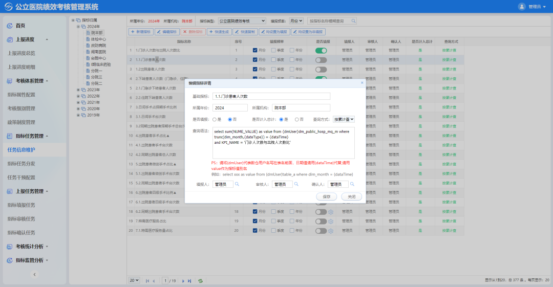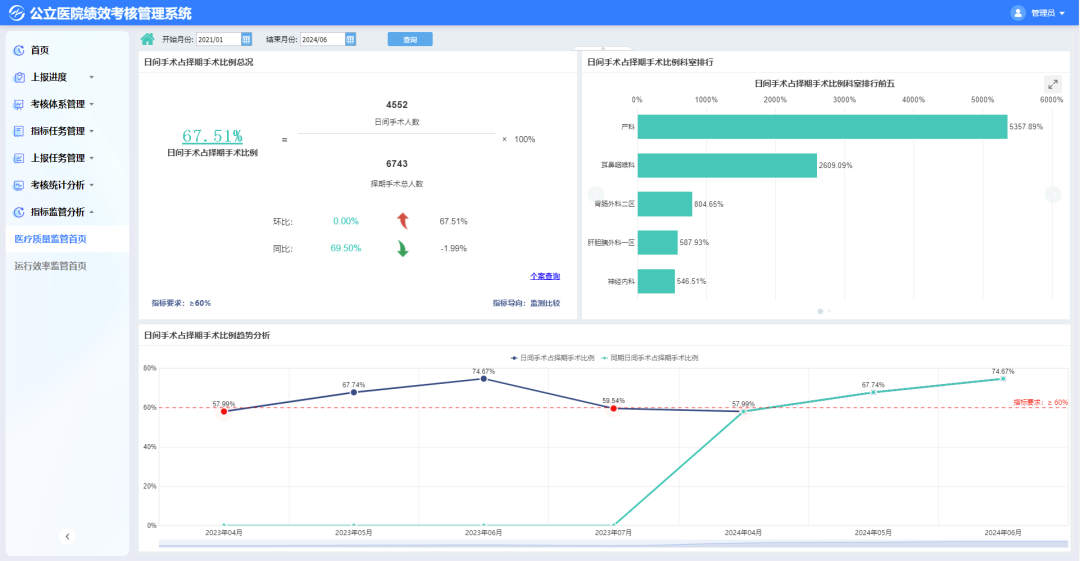 智业公立医院绩效考核管理系统可根据不同的考核指标进行不同粒度的管理,例如可针对指标关注程度可选择月度、季度或年度管理。同时能够满足国家要求,对指标的月度上报做适应扩展。