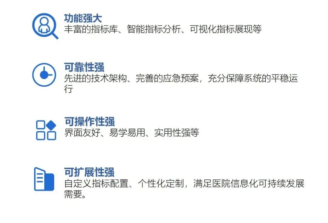 全流程医疗质控监管,推动医院智慧管理体系建设:系统提供包括功能定位、质量安全、合理用药、服务流程在内的四大类二十余项指标的实时监控,有助于医院管理层全局掌控医院质控管理进展与成果。