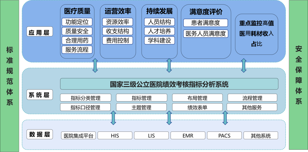 系统涵盖了包括医疗质量、运营效率、持续发展、满意度等在内的三级公立医院绩效考核指标体系中的全部指标,并提供指标占比、趋势分析、历史指标对比等在内的多维度统计分析,助力医院完美通关“国考”。